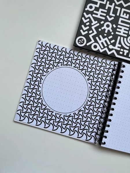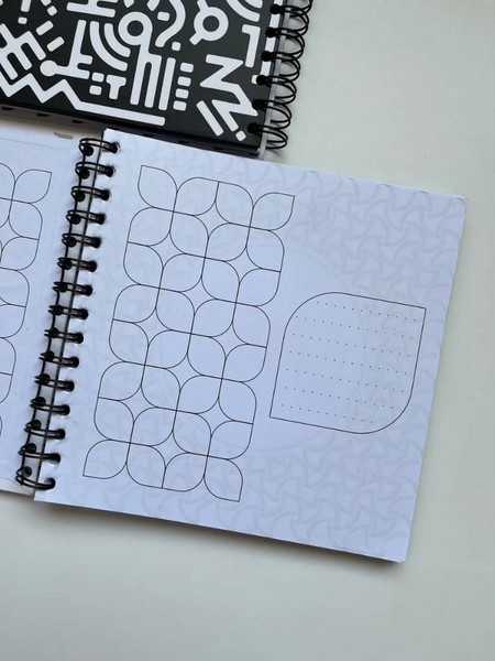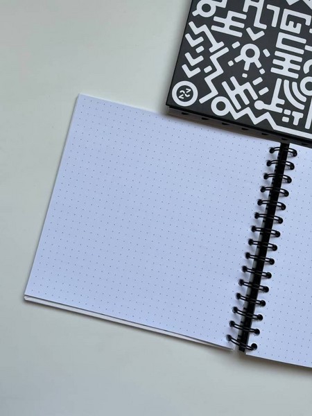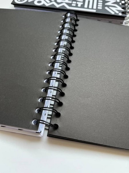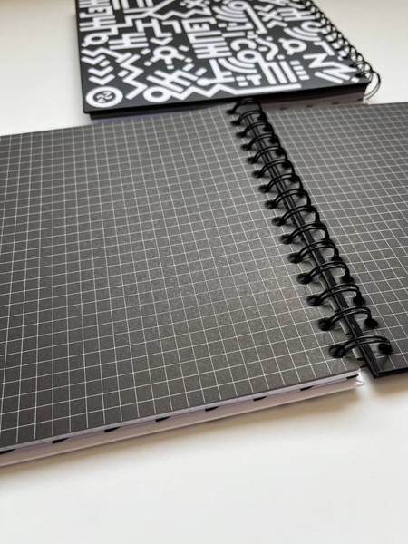 این دفتر به صورت چپ باز شو و راست باز شو قابل استفاده است.شامل 2 مدل کاغذ سفید و مشکی به صورت بی خط ، شطرنجی ، نقطه ای ست.