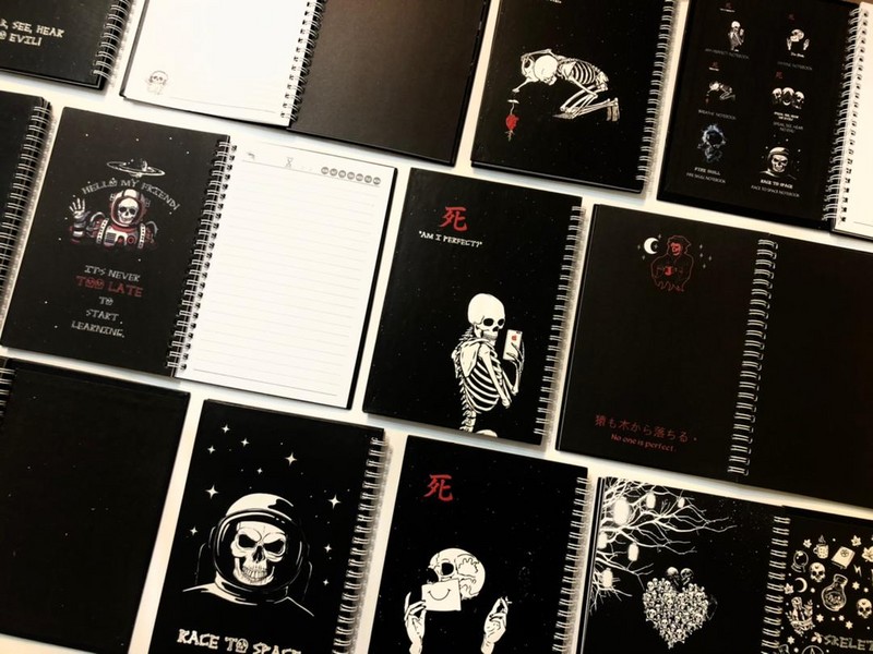 دفتر 40 برگ سیم از بغل دارای کاغذ مشکی ، نقطه ای و خط دار