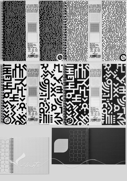 این دفتر به صورت چپ باز شو و راست باز شو قابل استفاده است.شامل 2 مدل کاغذ سفید و مشکی به صورت بی خط ، شطرنجی ، نقطه ای ست.